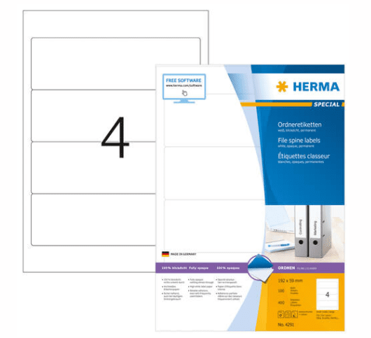 Naljepnice za registratore izrađene su od papira, potpuno neprozirnog materijala s velikom bjelinom.