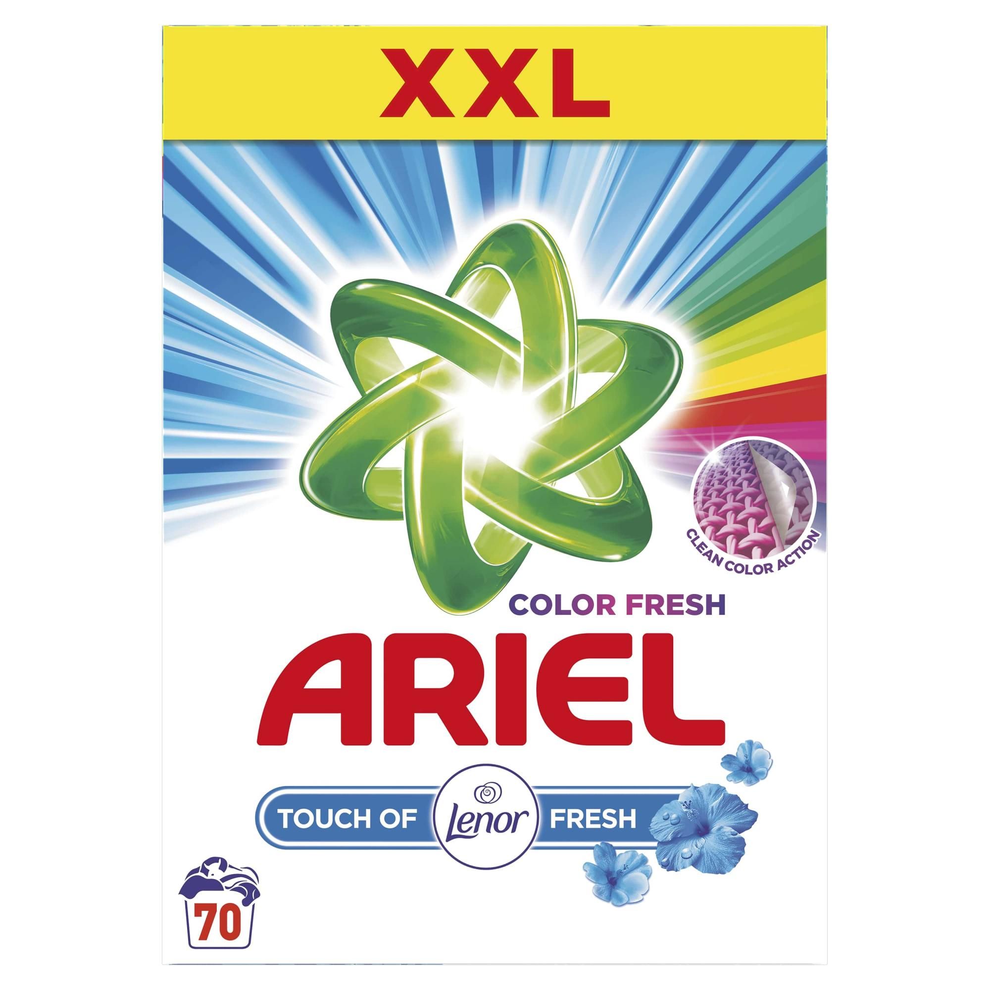 Prašak za pranje Ariel Touch of Lenor učinkovito uklanja mrlje pri prvom pranju. Deterdžent je nježan prema odjeći i nudi prekrasan, svježi miris. Uklanja mrlje, koje su prouzročene neugodnim mirisom, kao što je miris znoja.