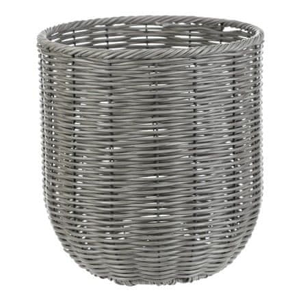 Set od tri navlake za cvjetne posude izrađen je od umjetnog ratana u sivoj nijansi, koji vjerno imitira prirodni materijal, a ujedno je otporan na vremenske uvjete. Svaka navlaka ima čvrstu metalnu konstrukciju, što osigurava stabilnost i dug vijek trajanja. Okrugli oblik i gusto ispreplitanje poliratana stvaraju ugodan vizualni efekt pogodan za moderne i klasične interijere. Navlake su prikladne za različite veličine cvjetnih posuda i mogu se koristiti i u zatvorenom prostoru i na terasi ili balkonu. Zahvaljujući setu od tri komada, moguće je stvoriti elegantan i ujednačen ukras s praktičnom upotrebom.