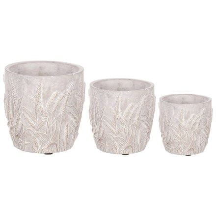 Naziv: Betonska posuda – dekor žitarica, siva boja, cijena za set od 3 komada