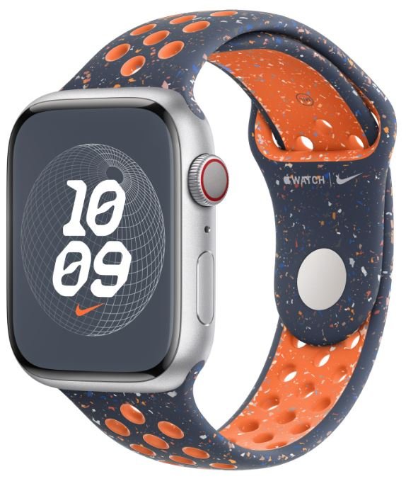 Sportska narukvica 45mm Midnight Sky Nike Sport Band tvrtke Apple. Izrađeno od recikliranog fluoroelastomera. Inovativno pričvršćivanje s aluminijskim klinom s mat površinom. Ima stisnute rupe za bolju ventilaciju. Remen je izdržljiv, jak i u isto vrijeme prekrasno fleksibilan. Šarene pahuljice na narukvici uvijek će stvarati nasumične uzorke, tako da će vaš Apple Watch uvijek biti originalni stilski dodatak kamo god pošli!