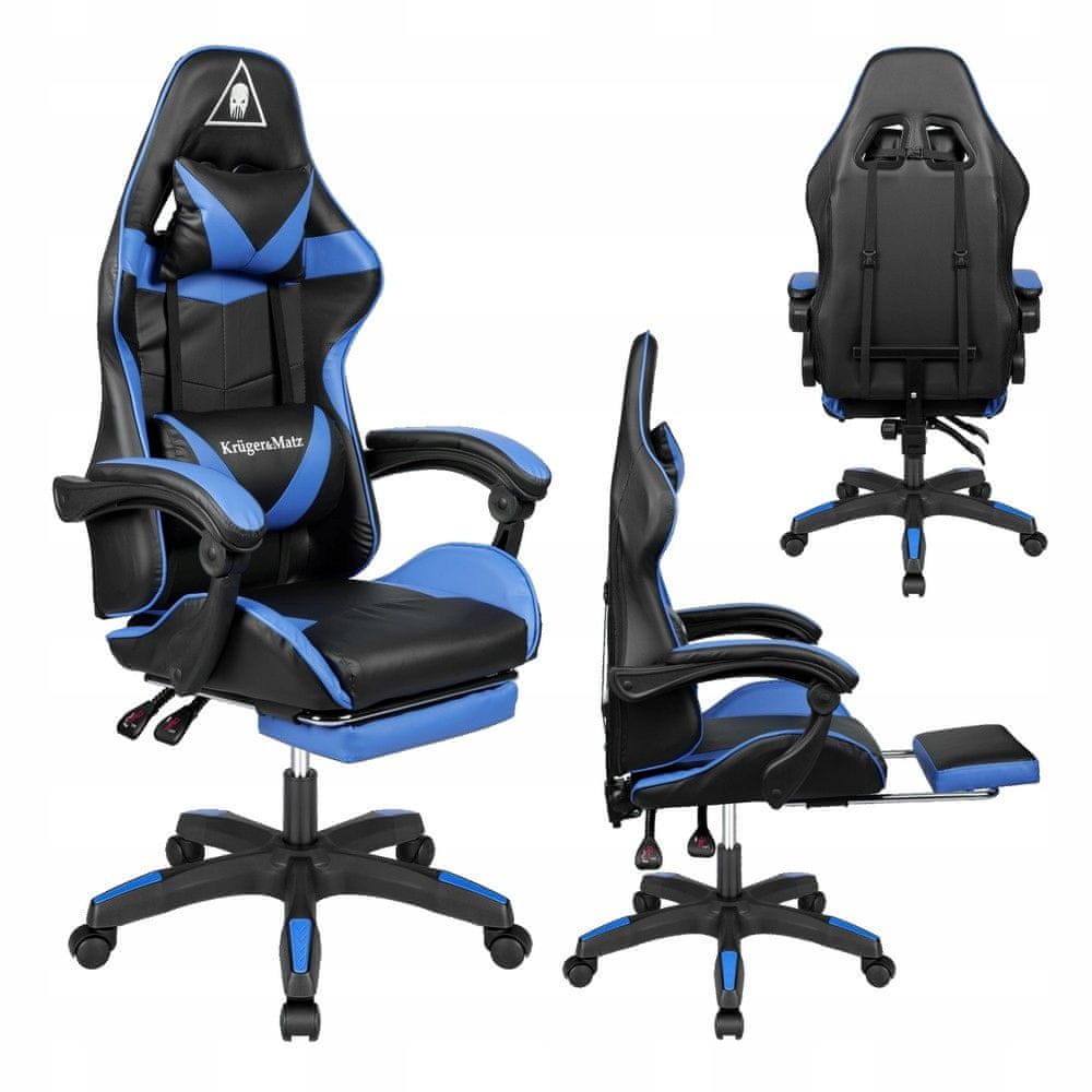Krüger&Matz Podesiva tapecirana stolica za računalo za igranje s osloncem za noge GX-150 crno-plava