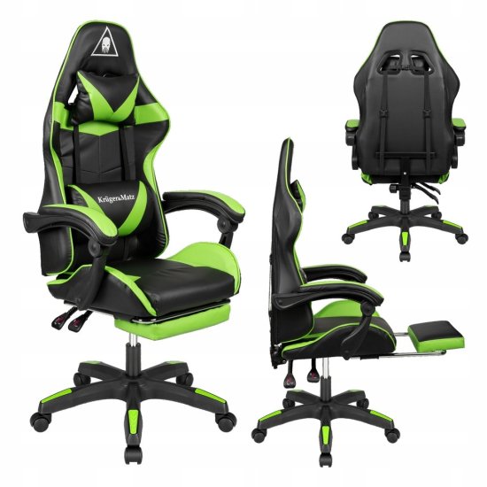 Krüger&Matz Podesiva tapecirana stolica za računalo za igranje s osloncem za noge GX-150 crna i zelena