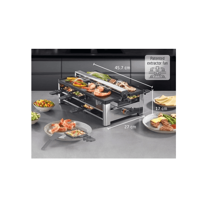 Raclette roštilj s 8 ne-ljepljivih tava (bez PFAS) za do 8 osoba