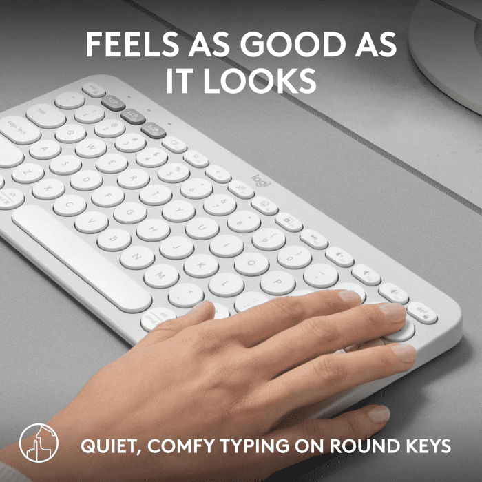 Bežična tipkovnica Logitech Pebble Keys 2 K380S lako se povezuje s računalnikom, tabletom i pametnim telefonima, podržava macOS, Windows, iPadOS, iOS i Android. Kompaktna i tiha za jednostavan prijenos bez ometanja okoline.