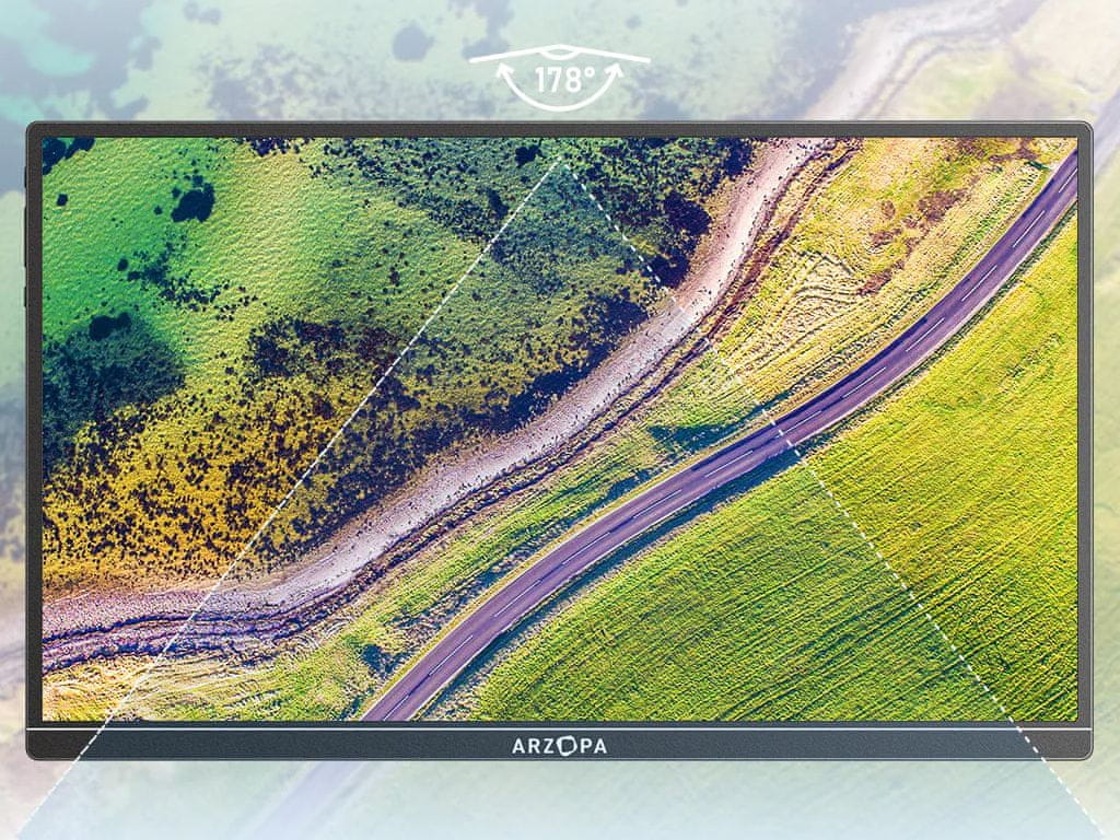 Arzopa A1S je 35,56 cm (14") prijenosni monitor dizajniran za korisnike koji cijene mobilnost. S iznimno tankim profilom od 4,1 mm i masom od samo 0,5 kg idealan je za putovanja jer ne opterećuje torbu. Full HD (1920 × 1080) IPS zaslon osigurava stabilnu sliku sa širokim kutovima gledanja, što je savršeno za rad ili zabavu u pokretu.