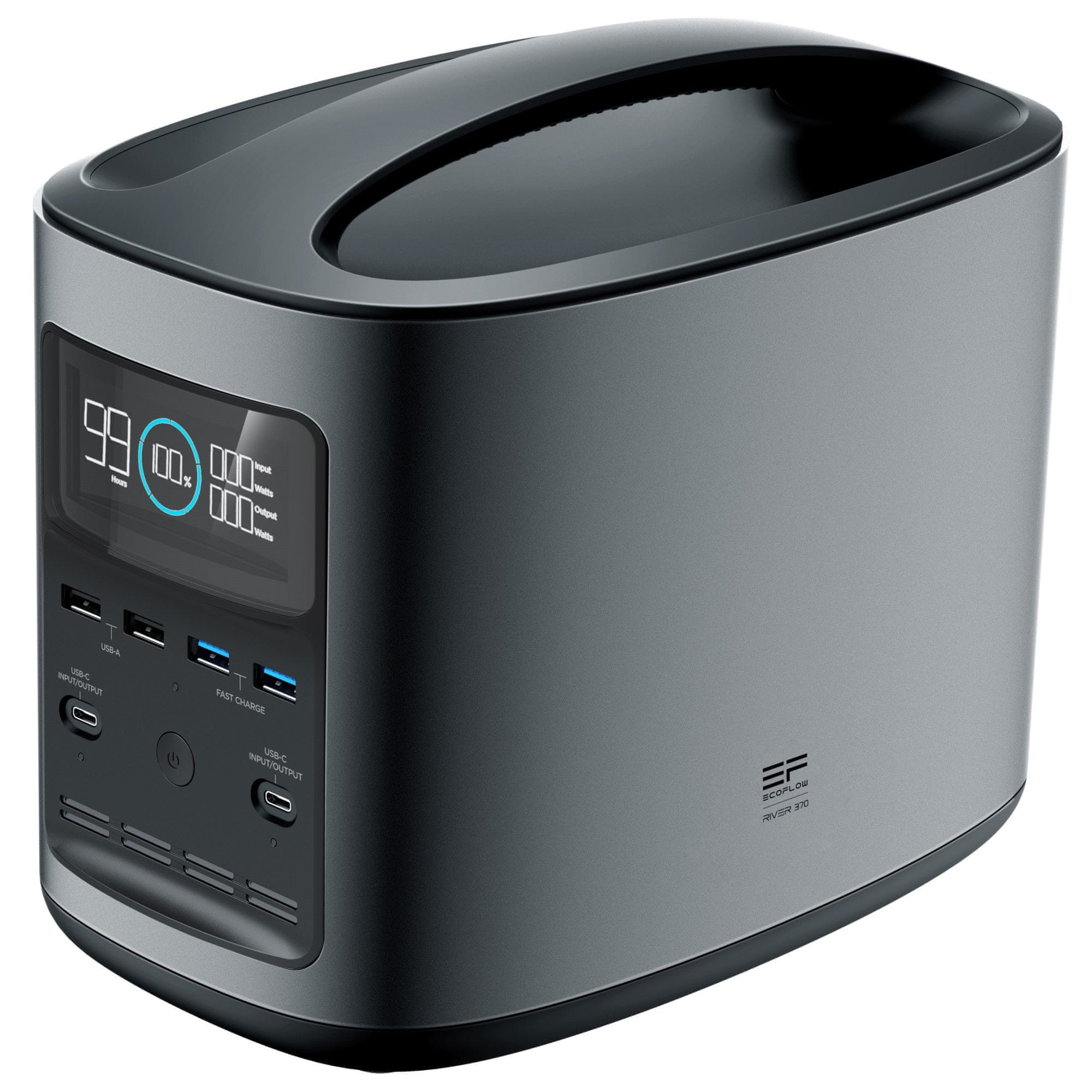 Lagana postaja za punjenje je dizajnirana za automobile. EcoFlow RIVER370 Portable Power Station 1ECO0370 je opremljena s AC, USB-C, USB-A z QC izlazima i 1 × 12V automobilskim vratima. Ima kapacitet 100 000 mAh i praktičan zaslon. Pogodno za kampiranje ili spasilačke službe.