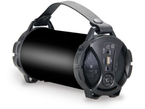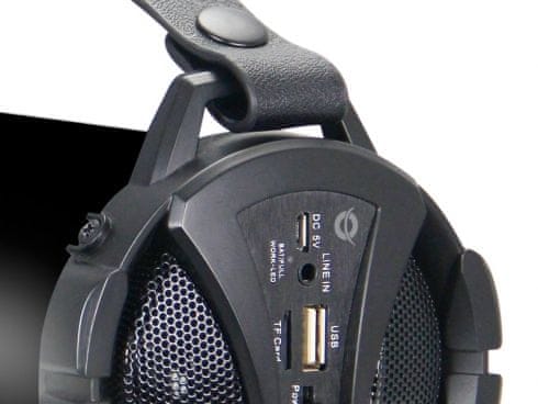 Iznimno snažan prijenosni zvučnik Conceptronic sa snažnim zvukom i robusnim oblikom zadovoljit će sve ljubitelje zabave. Velik je i lagan, zbog kožnog remena je odličan pratitelj na svim aktivnostima na otvorenom, poput piknika, kampiranja i zabave na plaži. Sadrži punjivu bateriju kapaciteta 1800 mAh koja omogućuje do 4 sata neprekidne zabave. Nemate Bluetooth vezu? Budite bez brige jer svoje omiljene skladbe možete slušati preko ulaza AUX, USB, micro USB i ulaza za Micro SD karticu. Ima ugrađeni FM radio prijemnik i višebojna LED svjetla koja će dočarati pravu atmosferu.