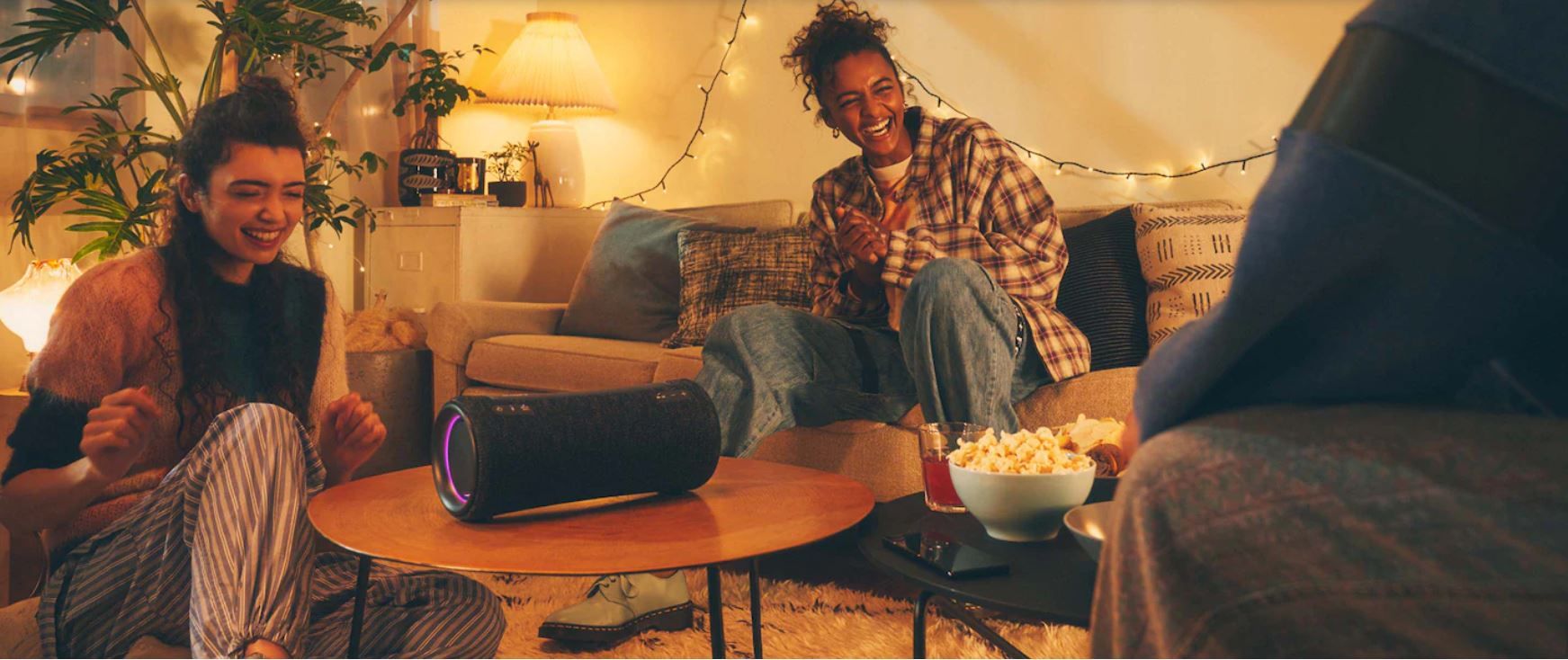 • Tehnologija Party Connect za bežično povezivanje s do 100 kompatibilnih zvučnika za povećanje glazbene izvedbe, funkcija Stereo Pair za povezivanje drugog zvučnika za stvaranje visokokvalitetnog stereo zvuka