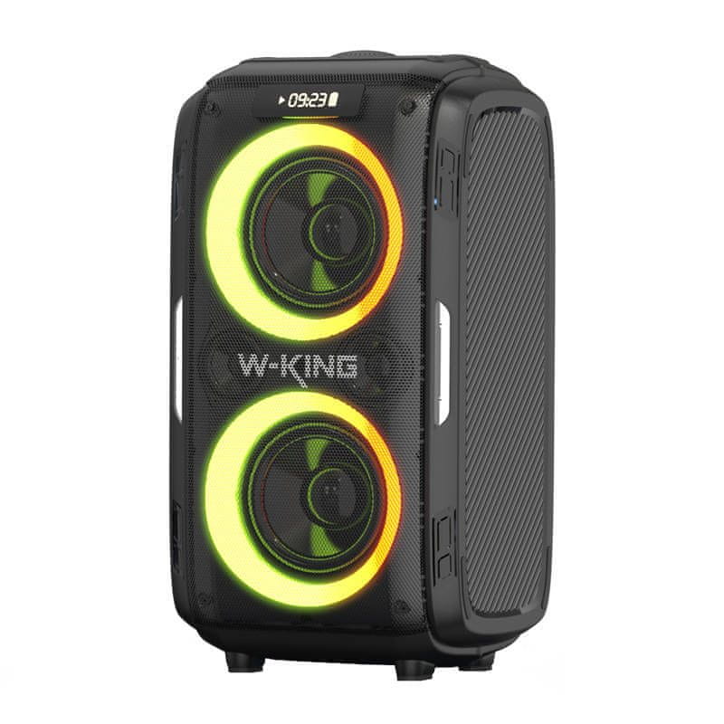 Zvučnik je opremljen baterijom od 18 000 mAh, što osigurava dugotrajan rad. Kada je potpuno napunjen, omogućuje do 12 sati korištenja. Paket uključuje adapter za praktično punjenje. Štoviše, možete upariti dva zvučnika za još bolje audio efekte. W-KING T9 Pro je također vodootporan prema IPX6 standardu i ima šareno RGB osvjetljenje.