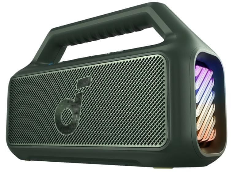 Soundcore Boom 2 mobilni zvučnik Soundcore Boom 2 je zvučnik za one koji traže snažan zvuk s dubokim basom, izdržljiv dizajn otporan na vodu i prašinu, dugo trajanje baterije i upečatljiva LED svjetla koja će dodati sjaj svakoj zabavi. Savršen je izbor za aktivne ljude koji cijene visokokvalitetan zvuk i mogućnost dijeljenja glazbe u svim uvjetima. Prednosti Boom 2 zvučnika: – Snažan zvuk s poboljšanim basom (BassUp 2.0). – IPX7 vodootporna ocjena omogućuje sigurnu upotrebu na plaži ili uz bazen. – Dugo trajanje baterije do 24 sata omogućuje vam slušanje glazbe cijeli dan bez prekida za punjenje. – Funkcija Power Bank omogućuje vam punjenje mobilnih uređaja. – Dinamička LED svjetla koja se sinkroniziraju s glazbom. Iznimna kvaliteta zvuka. Najveća prednost Boom 2 je impresivna snaga zvuka i dubok, rezonantan bas. Zahvaljujući BassUp 2.0 tehnologiji, zvučnik automatski analizira vašu glazbu i pojačava niske tonove, pružajući snažan utjecaj koji možete osjetiti. Idealan je za glazbene žanrove s puno basa poput hip-hopa, EDM-a i rocka. Dinamična LED svjetla Soundcore Boom 2 zvučnika ne pružaju samo zvučne već i vizualne efekte. Ugrađena LED svjetla pulsiraju i mijenjaju boje s glazbom, stvarajući pravu atmosferu za zabavu. Izvrstan je dodatak kućnim zabavama, okupljanjima na otvorenom ili jednostavno za podizanje energije u svakodnevnom slušanju. Vodootporan i otporan na prašinu (IPX7) Kao i mnogi Soundcore zvučnici, Boom 2 ima IPX7 certifikat, što znači da je potpuno vodootporan. Možete ga sigurno ponijeti na plažu, bazen, tuširati se ili čak uroniti u vodu (do 1 metra na 30 minuta). Specifikacije: