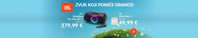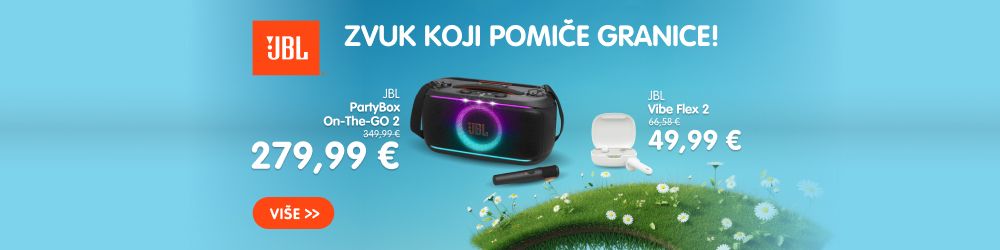JBL PartyBox On-The-GO 2 je prijenosni zvučnik sa snažnim JBL Pro zvukom, dinamičnim svjetlosnim showom i priloženim bežičnim mikrofonom za karaoke. Nudi do 15 sati reprodukcije, otporan je na prskanje (IPX4) i omogućuje povezivanje više zvučnika putem Auracast™ tehnologije. Idealan je za zabave u pokretu.