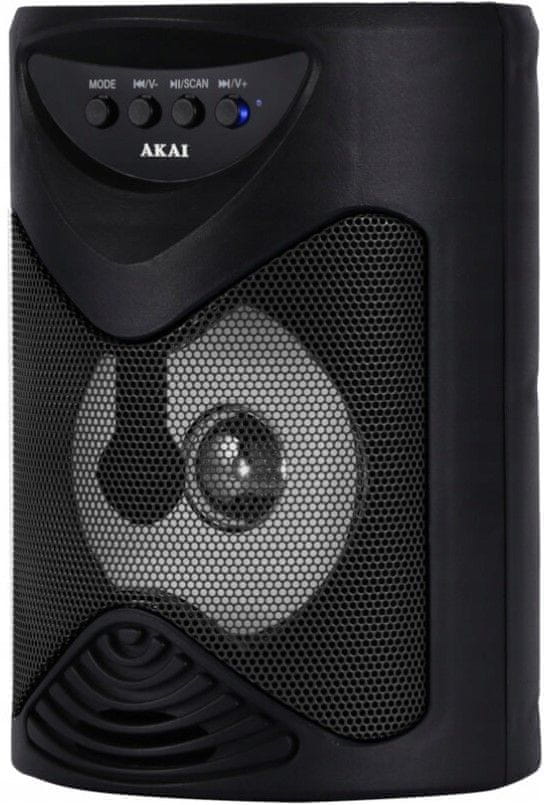 Svaki slušatelj koji prati trendove bit će impresioniran ultramodernim i elegantnim dizajnom prijenosnog zvučnika Akai ABTS-704. Kućište je izrađeno od kvalitetne plastike, a dostupna je i hladna rasvjeta. Zahvaljujući izdržljivoj dršci, lako ga možete nositi u ruci. Upravljač je ugrađen izravno u uređaj. Ugrađena 500 mAh Li-Ion baterija omogućuje 1,5 sat reprodukcije uz maksimalnu glasnoću s jednim punjenjem. Za punjenje se koristi USB kabel koji se u potpunosti napuni za 2 sata.