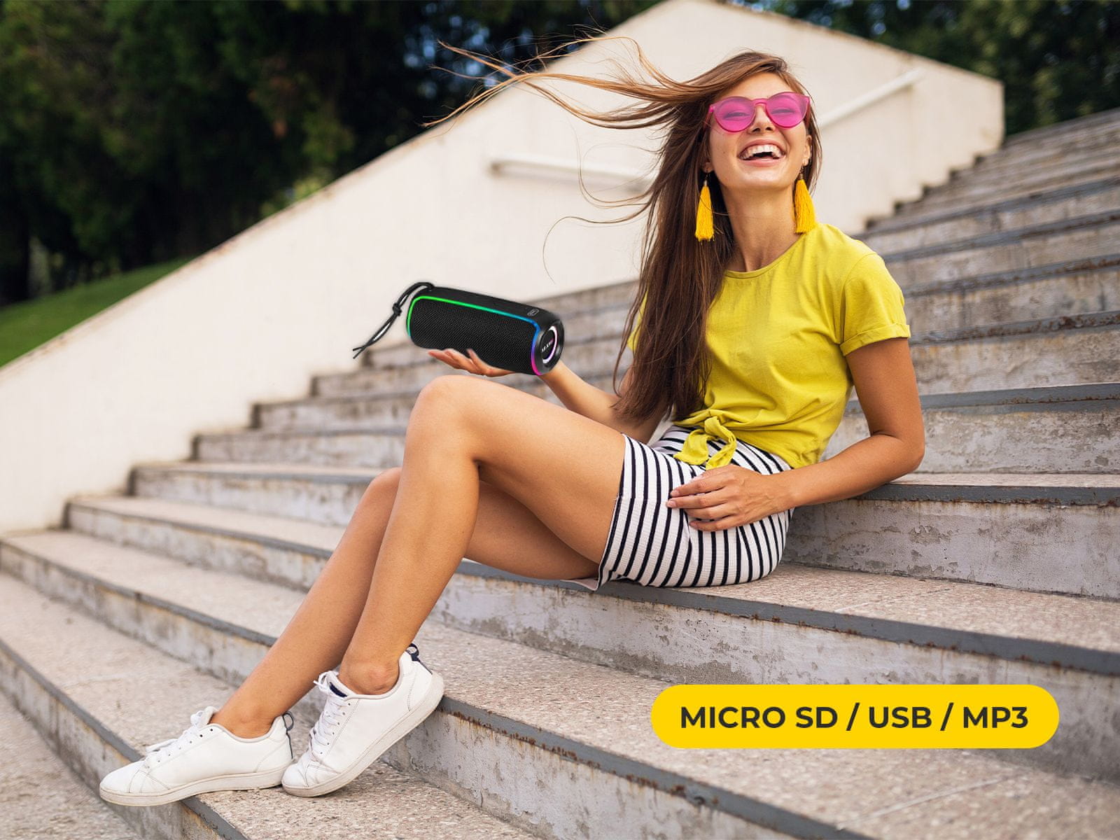 Doživite nevjerojatno iskustvo i pravu zabavu! Zvučnik ima TWS (True Wireless Stereo) funkciju, što znači da možete brzo i jednostavno spojiti dva zvučnika zajedno, stvoriti savršen surround zvuk i povećati glasnoću i kvalitetu zvuka.