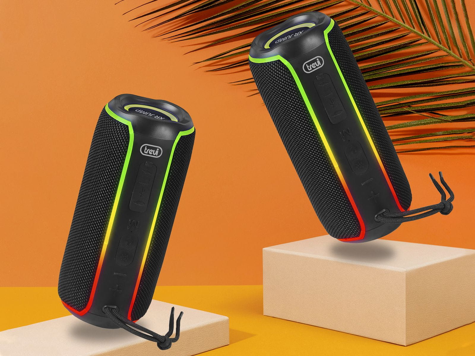 Trevi XR Jump 8A30 zvučnik, 20W RMS, Bluetooth, RGB LED osvjetljenje, IPX6 vodootpornost, funkcija TWS, punjiva baterija, microSD, USB, AUX, mikrofon, USB-C, crni