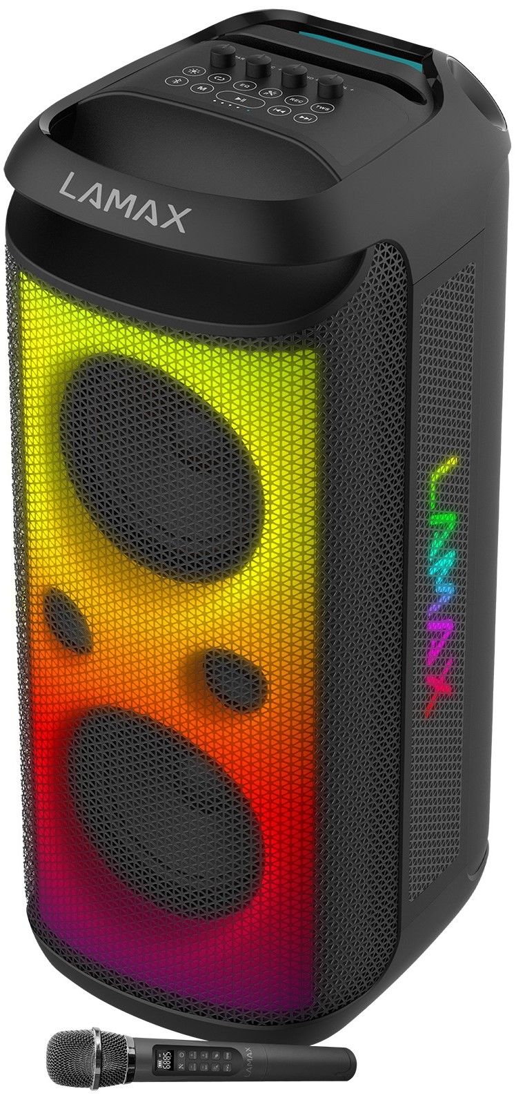 LAMAX PartyKing1 Max potpuno će vas razoružati ne samo zvukom i performansama, već i velikim rasponom podržanih formata (MP3, WAV, FLAC, AAC) i varijabilnošću veze (microSD, USB-A, AUX ulazi za mikrofon i gitaru). Uz moderni Bluetooth 5.3 možete se spojiti i na razne uređaje. Ali ako nemate ništa pri ruci s kojeg možete reproducirati playlistu, ugađanje FM radija će riješiti problem. Želite li se okušati u vlastitoj proizvodnji? Super, uzmi bežični mikrofon koji ćeš naći blizu zvučnika, uključi karaoke mod i kreni. Opcija snimanja će snimiti vašu izvedbu i učiniti da izgledate kao prava zvijezda u sjaju do 8 podesivih LED efekata.