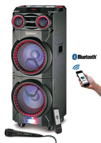 Akustični audio sustav MANTA SPK6011Akustični audio sustav donosi nevjerojatne performanse, kristalno jasan i čist zvuk. To je jedan od najmoćnijih audio sustava, koji će vam od velike pomoći organizirati zabave. Podržava mnoge različite vrste veza koje vam omogućuju povezivanje bilo kojeg izvora glazbe: Bluetooth, USB, MP3, MicroSD / SD / MMS, AUX-in i FM radio. Nudi mogućnost povezivanja dvaju mikrofona i time osigurava pravu karaoke zabavu. |