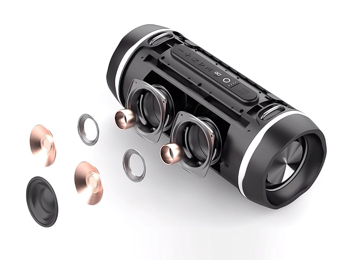 Zvučnik u sebi krije snažnu punjivu bateriju koja će osigurati bežični rad i reprodukciju glazbe i audio sadržaja bilo gdje i bilo kada! Glazbu možete puštati i sa pametnih uređaja ili preko AUX ulaza (MP3 player, računalo, itd…).