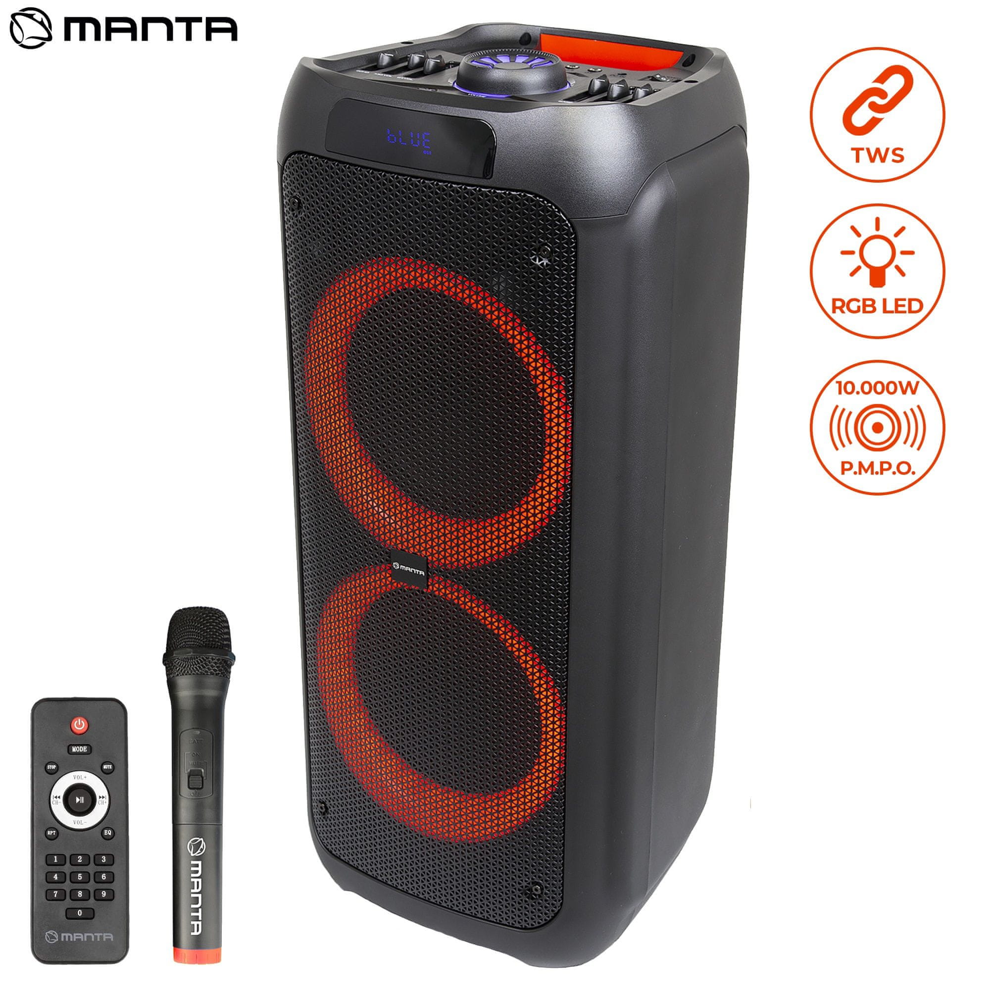 Manta SPK5310 PRO zvučnik, karaoke, ugrađena baterija, Bluetooth, USB, MP3, FM, disko LED, TWS, 10000 W P.M.P.O.