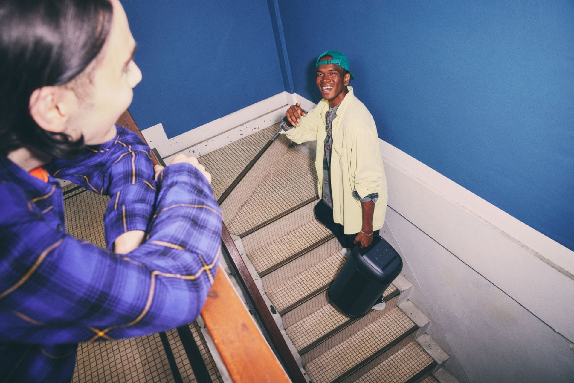Zvučnik je opremljen ručkom za jednostavno prenošenje. Jedinstveni dizajn omogućuje vodoravno ili okomito postavljanje zvučnika. Višebojno osvjetljenje dodatno će poboljšati iskustvo slušanja omiljene glazbe. Vodootpornost prema standardu IPX4 nudi dodatnu zaštitu u slučaju kontakta s kapljicama vode.