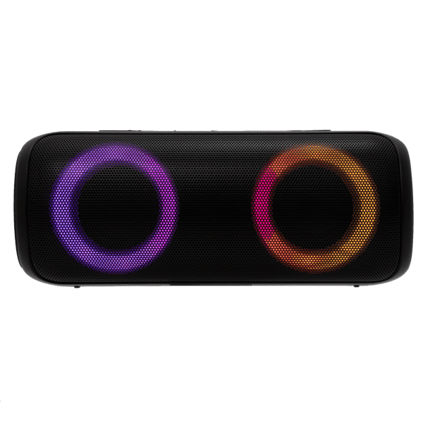 Kompaktni Bluetooth zvučnik White Shark GBT-876 Madal s izlaznom snagom 2×10W RMS, frekvencijskim rasponom 30Hz-18kHz, hands-free funkcijom, FM i TWS podrškom, ugrađenom baterijom od 4000 mAh, LED osvjetljenjem i do 12 sati reprodukcije glazbe, u crnoj boji.