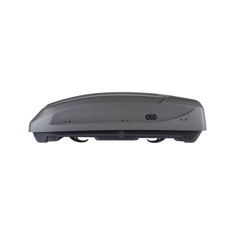 Krovna kutija omogućuje optimalnu organizaciju prtljage zahvaljujući dvostranom otvaranju, patentiranom Quick 100 sustavu za brzu ugradnju i šarkama s amortizerima za jednostavno otvaranje i zatvaranje. Opremljena je središnjim zaključavanjem u tri točke za veću sigurnost i unutarnjim remenima za sigurno pričvršćivanje prtljage. Kompatibilna je sa svim vrstama CRUZ nosača, bez potrebe za dodatnim alatima, te pruža savršenu kombinaciju sigurnosti, praktičnosti i modernog izgleda.