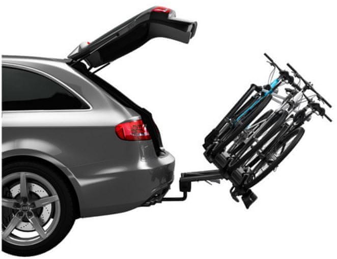 Nosač Thule VeloCompact 926 s najvećim opterećenjem od 60 kg je prikladan za transport 3 bicikla (uz kupnju adaptera 4). Jednostavno se montira bez upotrebe alata. Zahvaljujući podesivom držaču je također pogodan za bicikle s širim okvirom (do 80 mm).