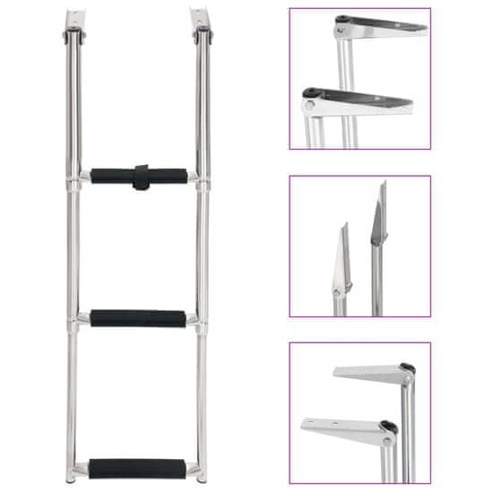 Vidaxl Sklopive ljestve za ukrcaj s 3 stepenice od nehrđajućeg čelika