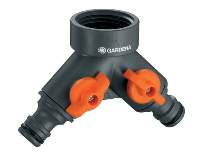 Četverokanalni opskrbljivač vodom GARDENA omogućuje istodobno spajanje nekoliko nastavaka na jednu slavinu.