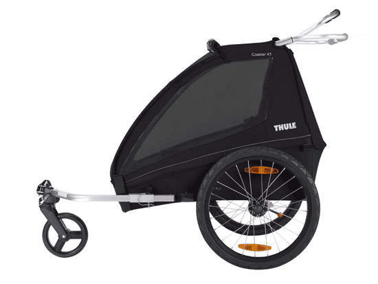 Thule Coaster XT prikolica za bicikl se lako pretvori u kolica. Pogodna je za prijevoz do dvoje djece. Osim toga, nudi i prostor za pohranu.