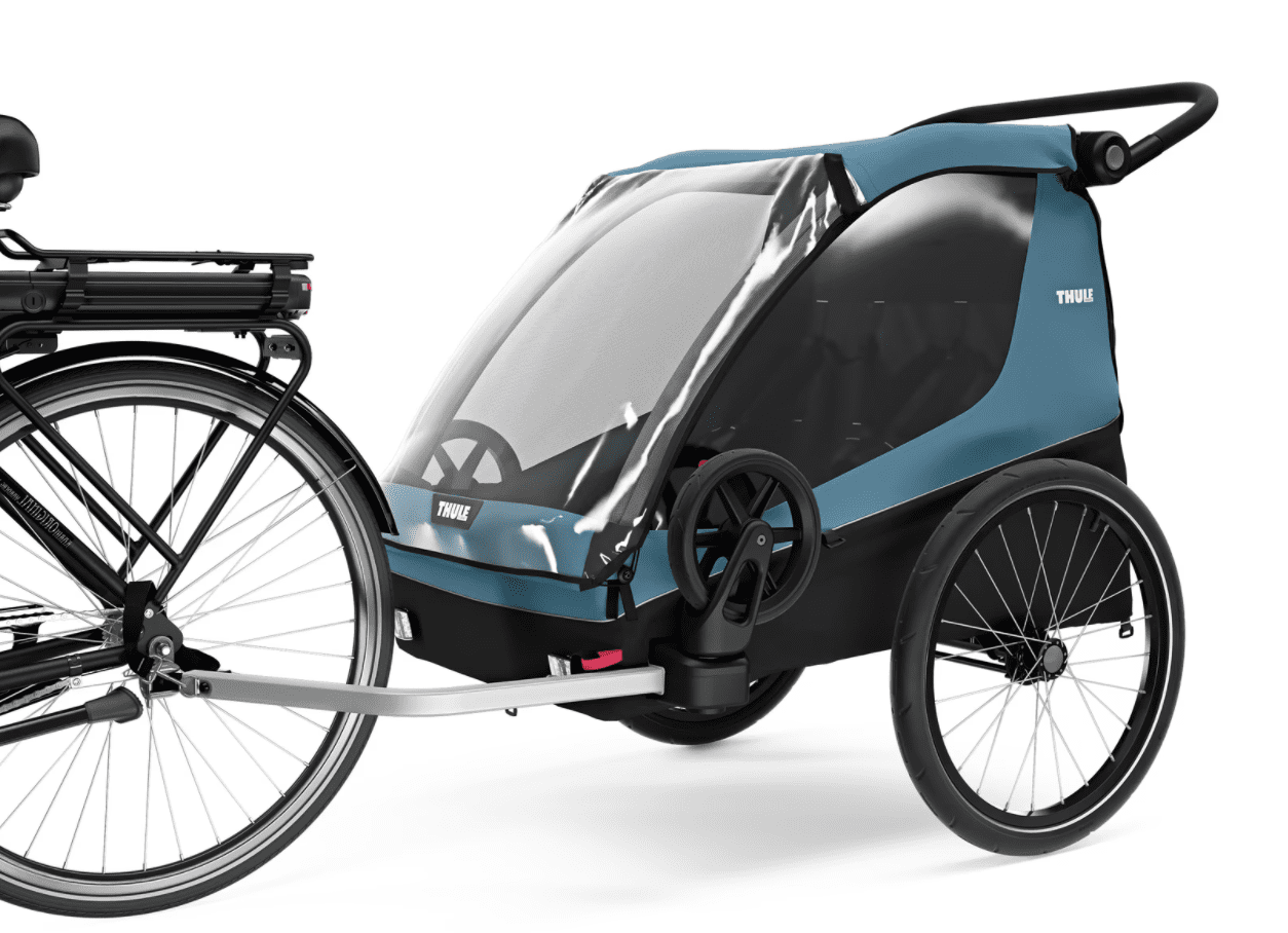 Thule Courier višenamjenska prikolica za bicikle s dva sjedala idealna je za aktivan obiteljski život. Može se koristiti za duže i kraće vožnje. Zahvaljujući jednostavnoj zamjeni prikolice u dječja kolica, možete je koristiti i za prijevoz djece u školu. Komplet za prikolicu olakšava transport, a dva visokokvalitetna kotača za kolica omogućuju jednostavno vođenje kolica između ljudi. Također možete koristiti prikolicu za prijevoz tereta, jer ima čvrsto dno i pričvrsne točke koje drže vaš teret na mjestu. Prikolica također može biti jedinstveno iskustvo za vašeg četveronožnog prijatelja. Thule Courier uključuje krevet za pse i krovni pokrivač s ugrađenom zaštitom od kiše.
