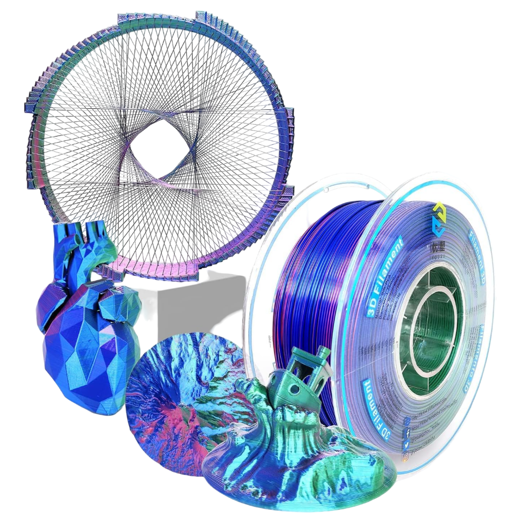 Filament YOUSU Tri-Colors PLA predstavlja inovativan koekstrudirani materijal dizajniran za korisnike 3D pisača koji teže postizanju visoke razine estetike u svojim projektima. Ovaj materijal integrira tri različite boje unutar jedne jezgre, što rezultira karakterističnim svilenkastim sjajem i glatkom završnom površinom svakog izrađenog modela. Posebnost ovog filamenta očituje se u vizualnom efektu gdje ispisani predmeti suptilno mijenjaju nijanse i svjetlucaju ovisno o kutu promatranja, pružajući gotovim radovima jedinstven i privlačan izgled bez potrebe za naknadnom obradom ili bojanjem. Zahvaljujući preciznoj proizvodnji i strogo kontroliranim procesima, ovaj filament osigurava pouzdanost i dosljednost prilikom svakog procesa ispisivanja na kompatibilnim uređajima.