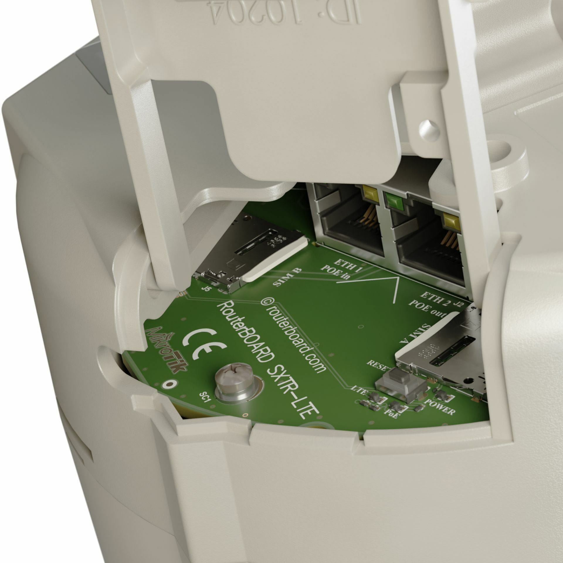 Mikrotik SXT LTE6 SXTR&FG621-EA postiže brzine prijenosa do 300 Mb/s i prijenosa do 50 Mb/s te ima 2 utora za mikro SIM za rezervnu povezivost u slučaju pada jednog operatera. Odličan izbor za udaljene lokacije pokrivene mobilnom mrežom.