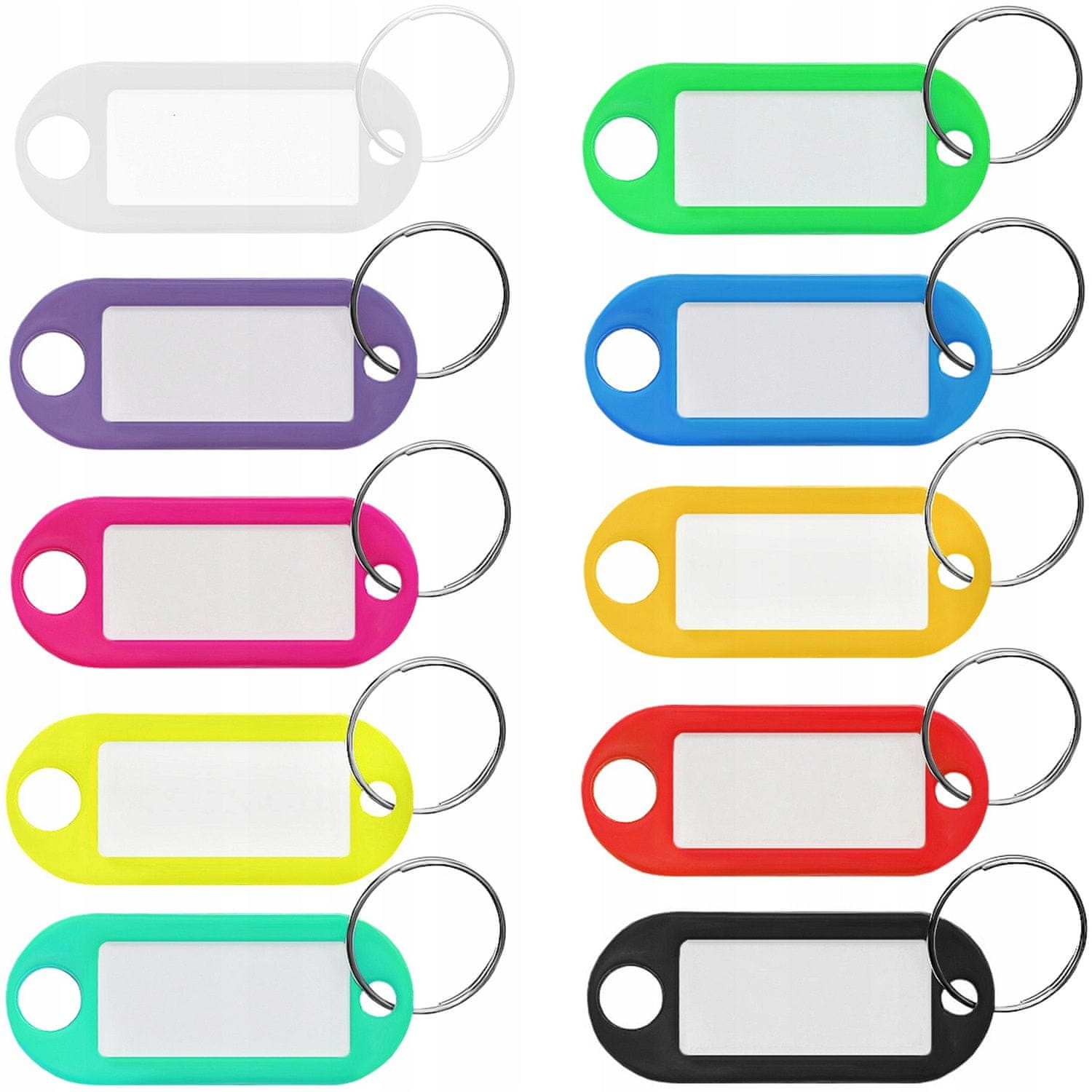 Značke ključeva živih boja (komplet uključuje kombinaciju boja) omogućuju vam da brzo pronađete komplet koji vam je potreban u torbici ili ruksaku. Čak i ako imamo nekoliko kompleta, lako ćemo pronaći onaj koji nas zanima u kratkom vremenu. Privjesci za identifikaciju ključeva imaju bijelu karticu s poljem za opis, koja je dodatno zaštićena prozirnim plastičnim staklom. Na bijeloj kartici možete unijeti više podataka o namjeni ključeva (npr. ormar, broj sobe i sl.), što dodatno olakšava odabir odgovarajućeg seta ključeva iz većeg seta.