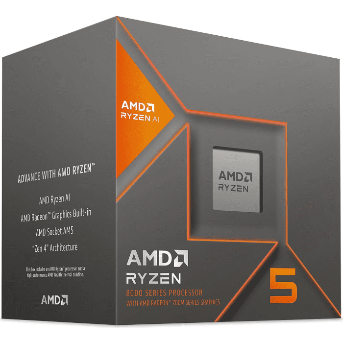 AMD Ryzen 5 8600G AM5: Takta 4.3GHz/5GHz, jezgre/niti 6/12, grafika AMD Radeon 760M 2800MHz, tehnologija TSMC 4nm, potrošnja 65W. Tehnologije: Zen 4, AMD EXPO, PCIe 4.0, DDR5 5200, AMD FreeSync, AMD Ryzen AI.