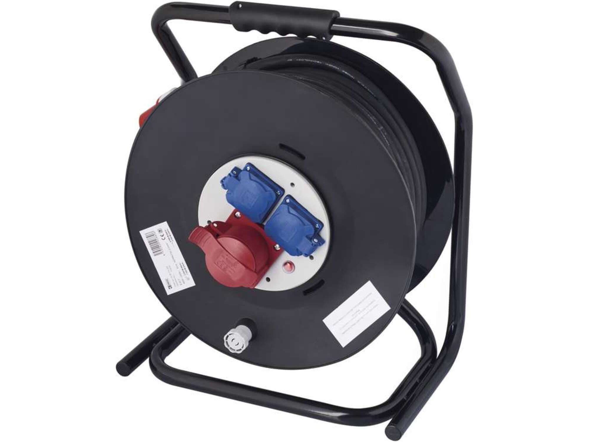 Produžni kabel podržava napon od 230 V~/400 V~ i maksimalnu struju od 15 A, a vodič H07RN-F5G s presjekom od 2,5 mm² omogućuje prijenos snage do 3500 W pri 230 V i do 6400 W pri 400 V u odmotanom kabelu. Uključujući sigurnosne brave za djecu i 3 utičnice, omogućuje fleksibilno i sigurno spajanje više uređaja istovremeno.