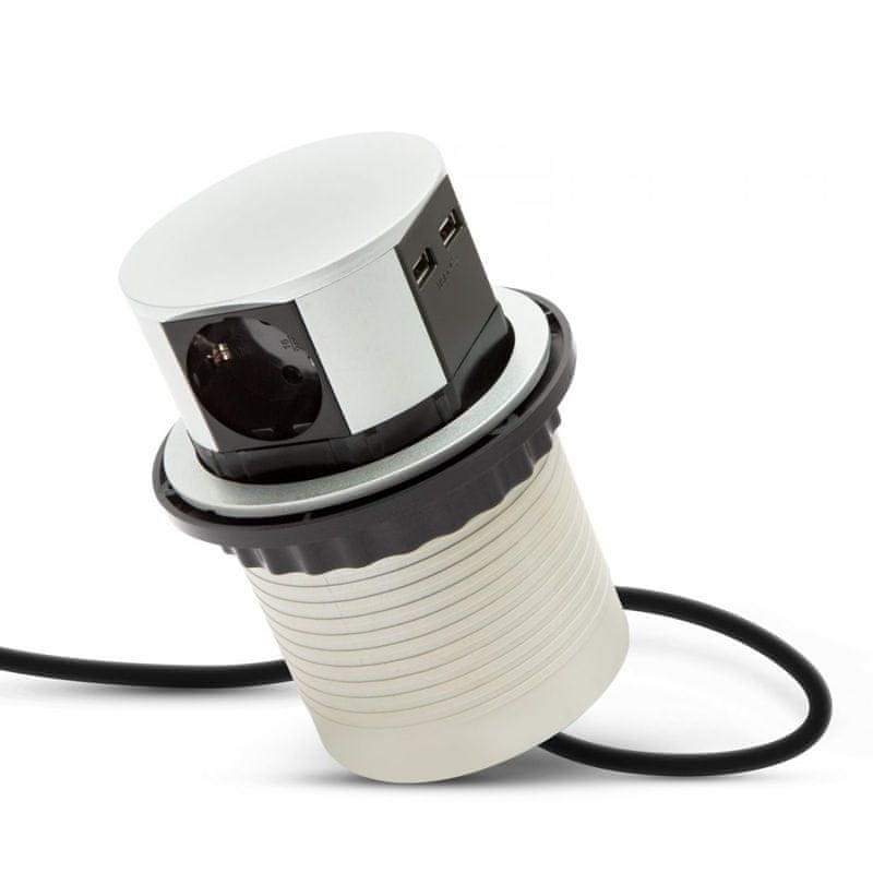 Delight stolna izvlačna utičnica 3 x 230 V + 2 x USB srebrna