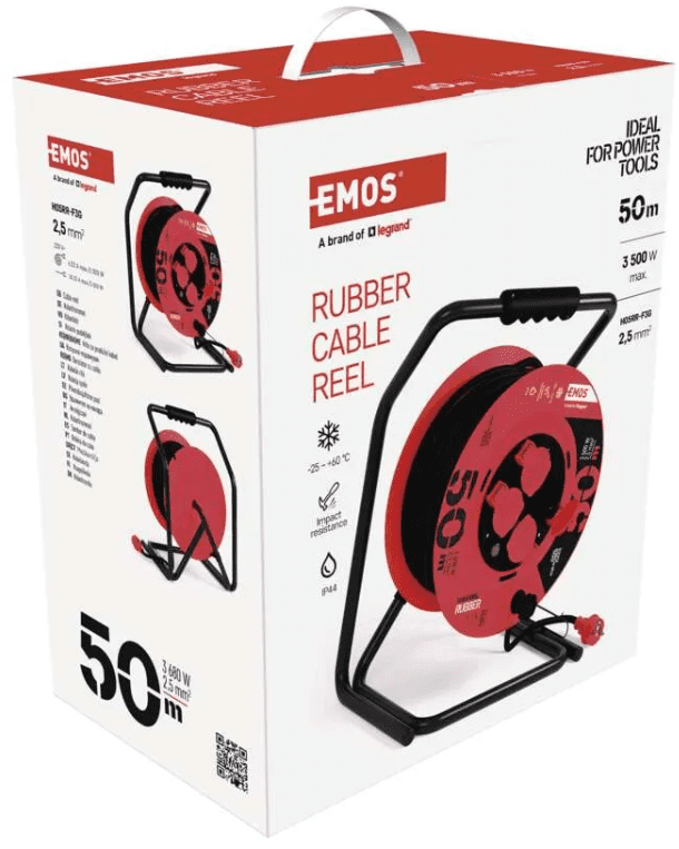 EMOS produžni kabel, 50 m, 4 utičnice, gumeni, 230 V, 2,5 mm2, vanjski, crni (P19221)