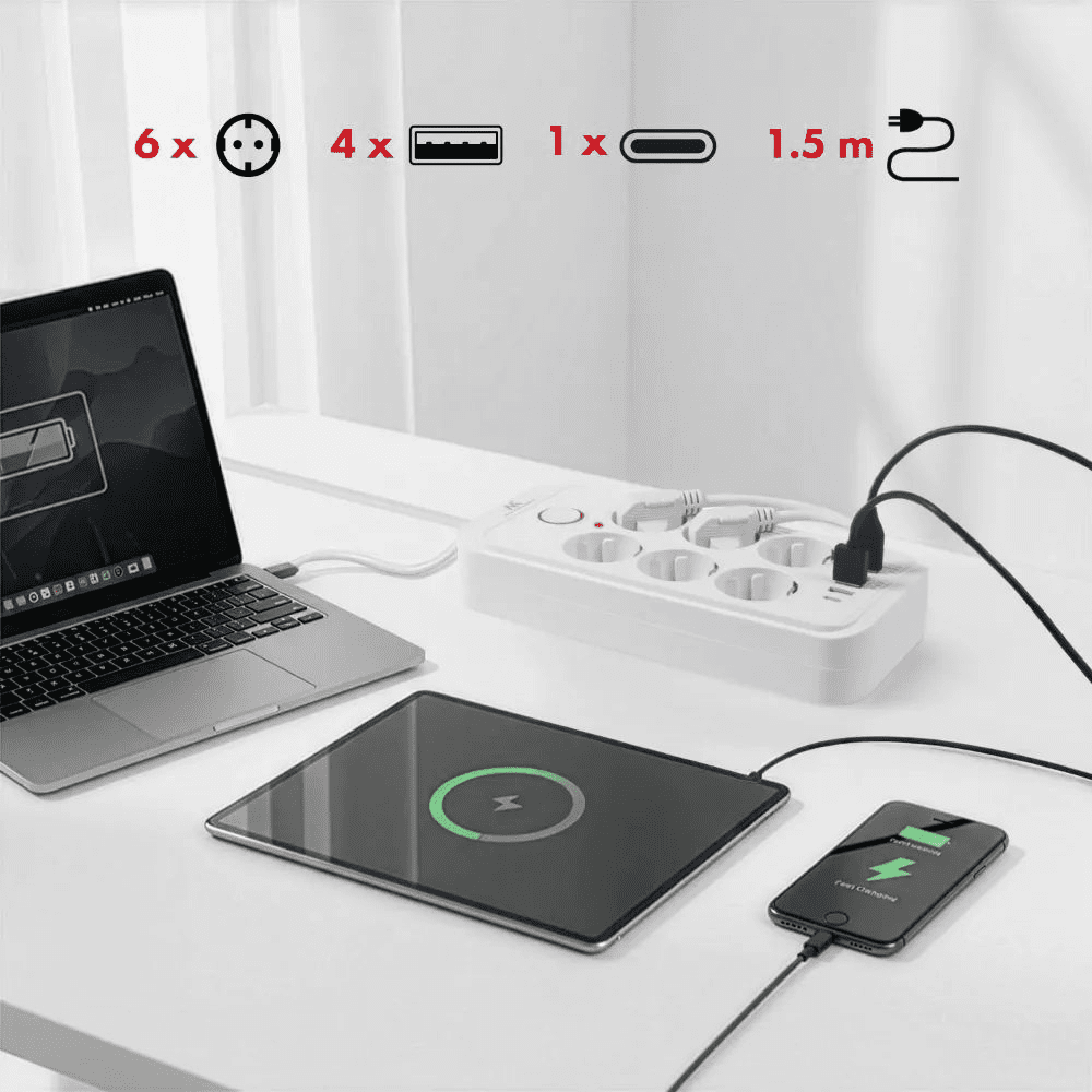Maclean Splitter produžetak MACLEAN MCE389W sa 6 utičnica + 4xUSB, 1.5m, bijeli