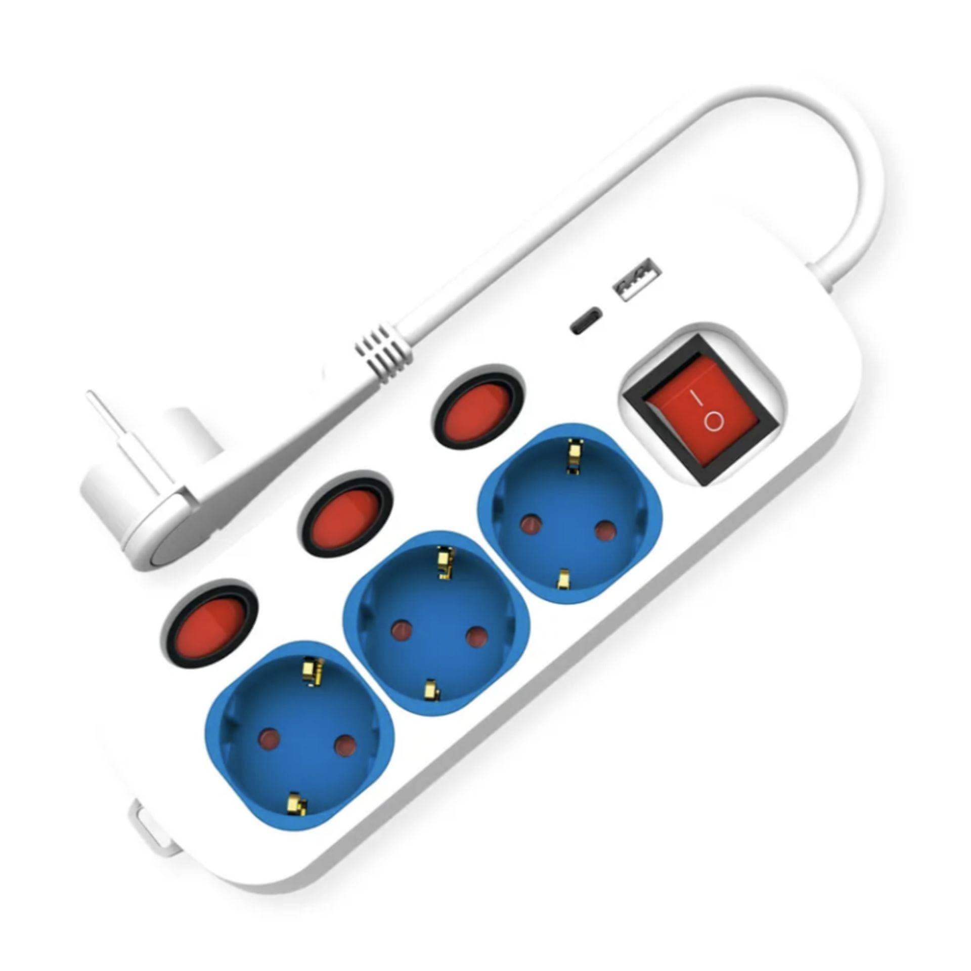Roline razdjelnik s 3 priključka (220V) omogućuje zasebno upravljanje svakog uređaja prek prekidača. S dodatnim USB TipC i TipA izlazima (2,4A) možete puniti i telefone i tablete. Opremljen je s 1,5-m kabelom i kompaktnim dizajnom, idealan je za dom ili ured.