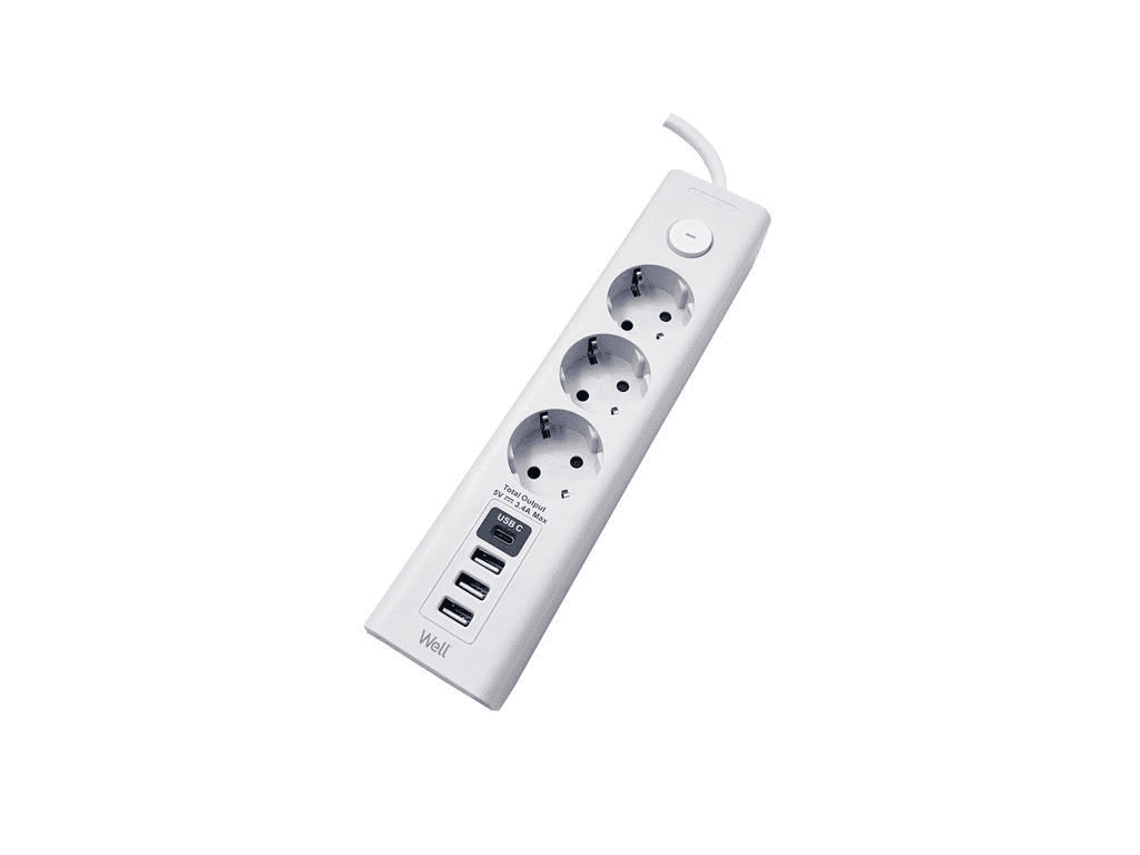 Well Pa 220V 1/3 3M + prekidač; 3xUSB-A + 1xUSB-C, White, IP20, 16a