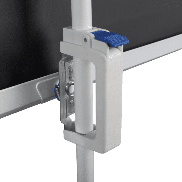 Prijenosno projekcijsko platno na tronošcu dimenzija 172 × 172 cm (96''), izrađeno od mat bijele tkanine s crnim obrubom. Podržava formate slike 16:9, 4:3 i 1:1, kut gledanja 160°. Kućište od čelika osmerokutnog oblika, stabilno i praktično za korištenje.