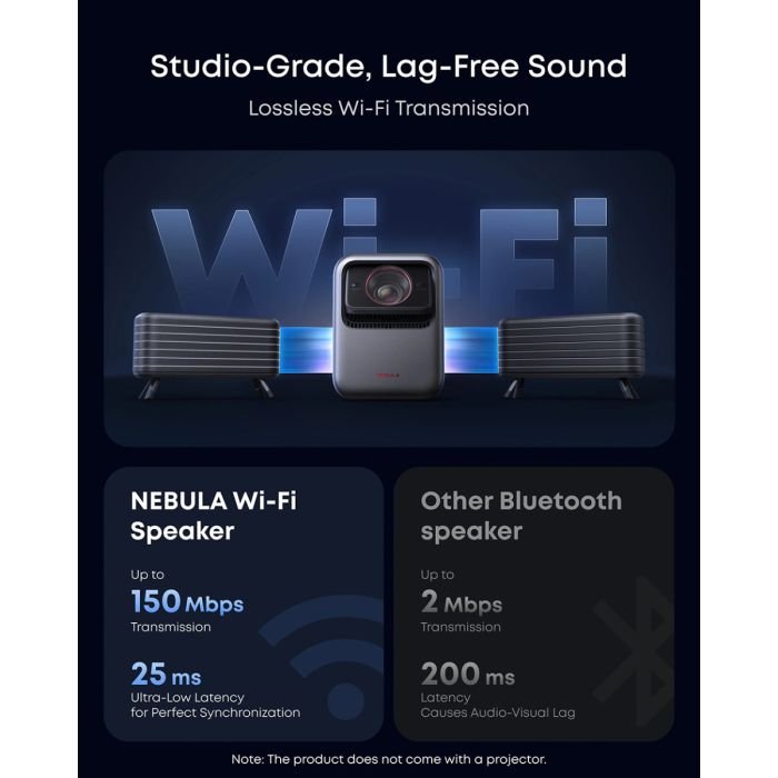 - 4.1.2 prostorni zvuk s bežičnim satelitskim zvučnicima: Povežite bežične satelitske zvučnike s NEBULA X1 za dodatnih 160 W snage i doživite izvanredan prostorni zvuk.