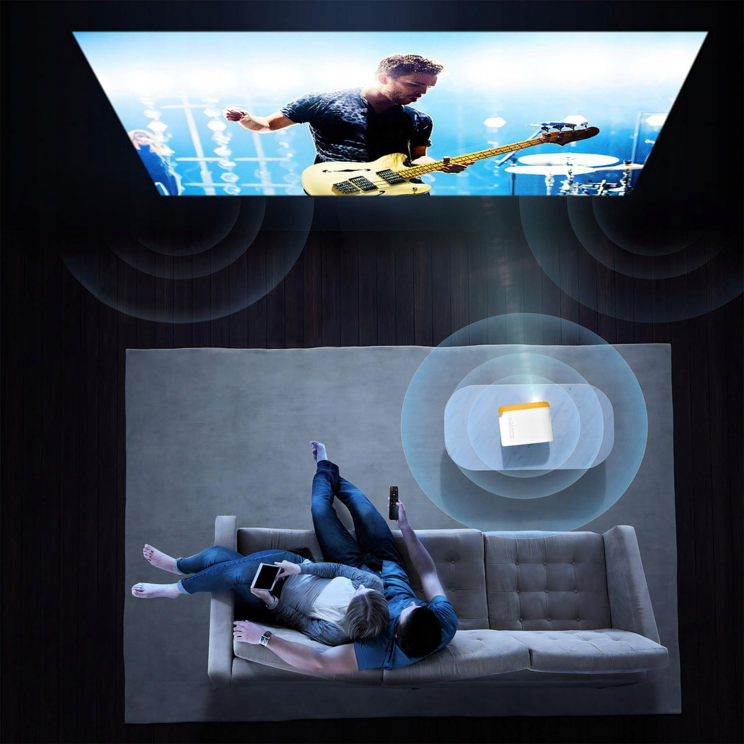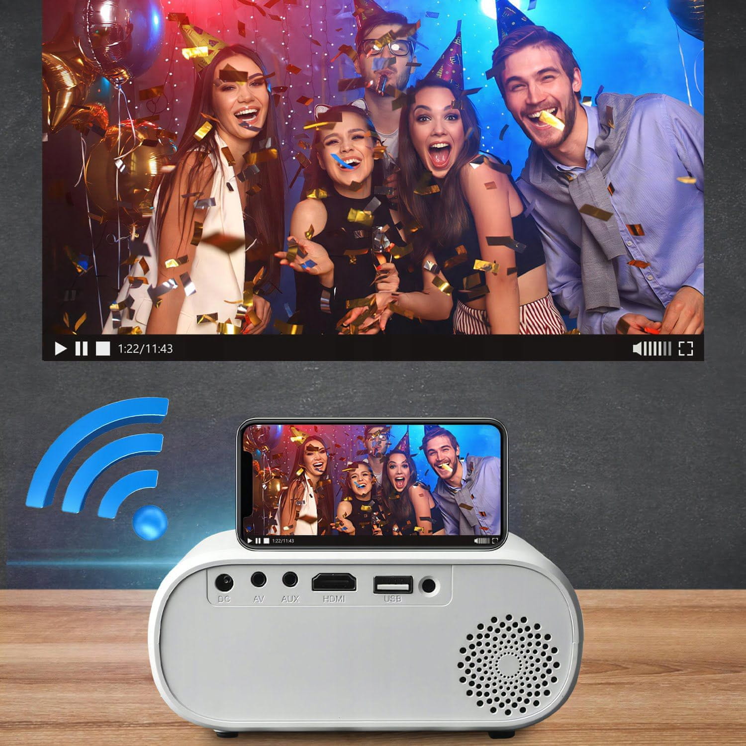 Zahvaljujući ugrađenom WiFi-u, projektor omogućuje bežično povezivanje sa širokim spektrom uređaja. Bez obzira koristite li Android telefon, iPhone, laptop ili tablet, uvijek ćete moći jednostavno reproducirati video i audio na velikom ekranu.