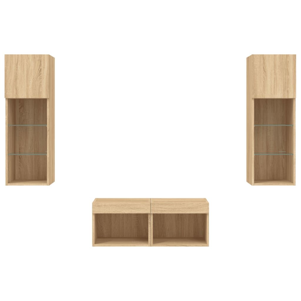 Vidaxl 4-dijelni zidni TV ormarići s LED svjetlima boja hrasta sonome