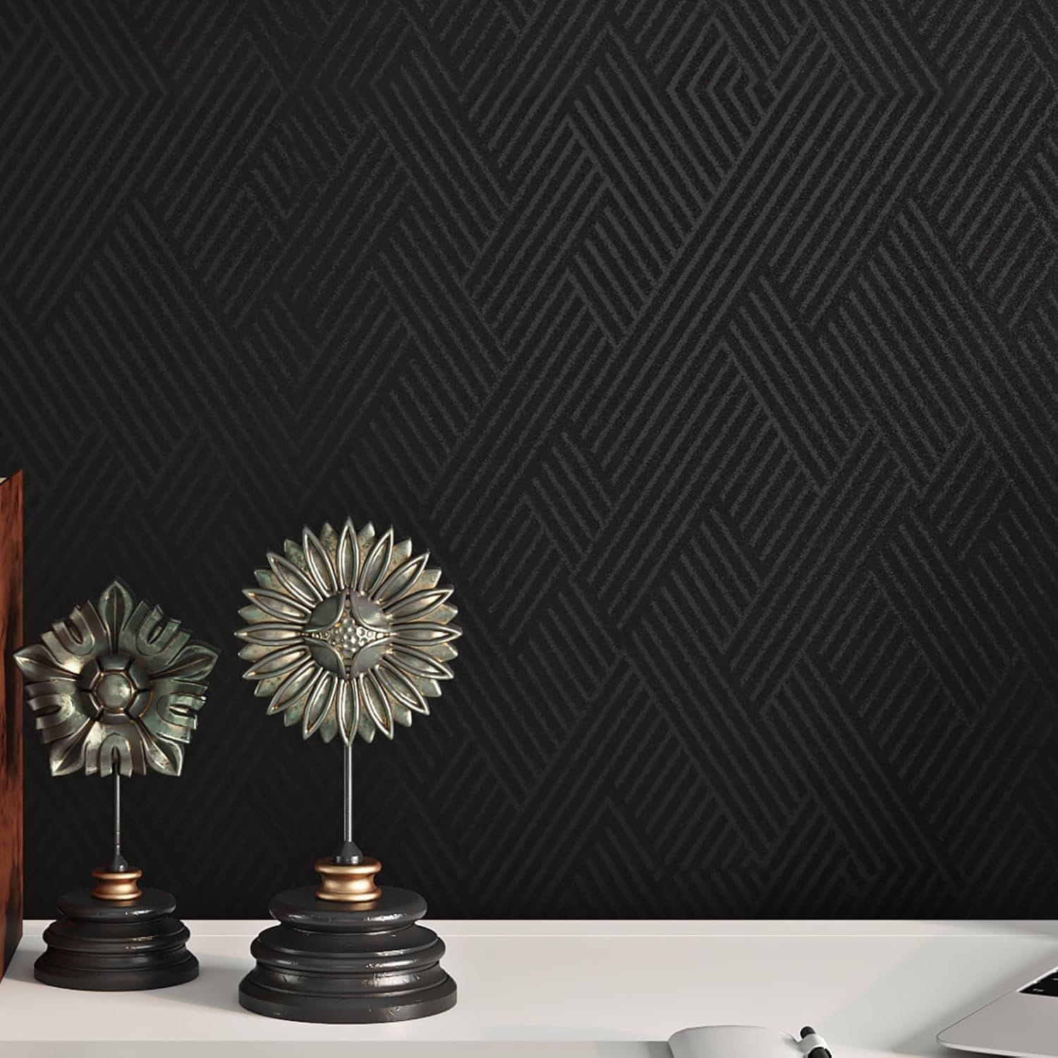 Samoljepljiva geometrijska tapeta Livelynine je moderno i praktično rješenje za uređenje interijera. Izrađena od visokokvalitetnog vinila, ova tapeta je vodootporna, izdržljiva i laka za čišćenje. Njena crna boja u kombinaciji s geometrijskim uzorkom daje prostorijama elegantan i minimalistički karakter. Zahvaljujući samoljepljivoj površini, nanošenje je brzo i jednostavno – dovoljno je odlijepiti zaštitni sloj i zalijepiti tapetu na odabranu površinu, omogućujući brzu preobrazbu interijera bez potrebe za skupim renovacijama.