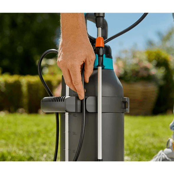 GARDENA tlačna prskalica 5 l EasyPump je odličan dodatak za njegu biljaka i grmlja jer omogućuje jednostavno prskanje bez potrebe za ručnim pumpanjem. Ova tlačna prskalica opremljena je integriranom Li-Ion baterijom koja stvara stalan i stalan tlak u posudi, što čini rad puno lakšim. Pomoću dodatnog otvora i integrirane mjerne posude možete jednostavno puniti, mjeriti i prazniti posudu od 5 litara, što povećava praktičnost korištenja.