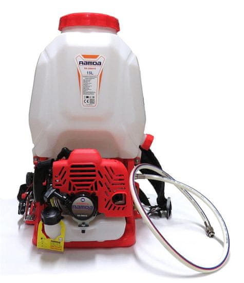 Leđna motorna prskalica Ramda SP988 može se pohvaliti cijevi za prskanje od 60 cm, kvalitetnim 2-taktnim Ramda motorom obujma 25,4 cm3, snage 0,65 kW i maksimalnog radnog tlaka od 25 bara.