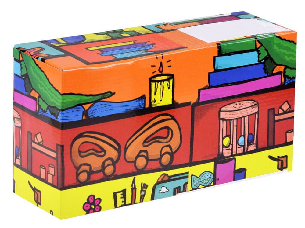 Unutar igračke nalaze se šarene figurice koje pri igri ispuštaju ugodan zvuk. Boja igračke je zadržana u vrlo atraktivnim tonovima.