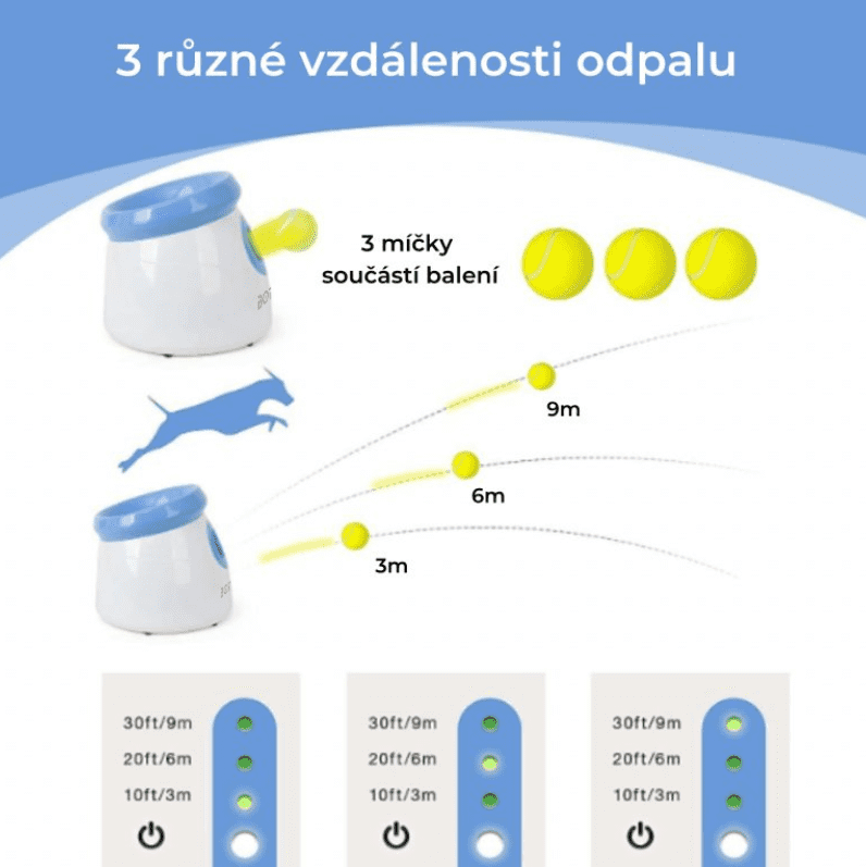 Bacač nudi tri udaljenosti izbacivanja loptice, otprilike 3, 6 ili 9 metara, ovisno o vašem prostoru. Dovoljno je ubaciti lopticu u uređaj i on će je automatski izbaciti. Najbolje od svega je što to ne morate uvijek raditi vi – vaš pas to može naučiti i sam, dok vi mirno pijete kavu.